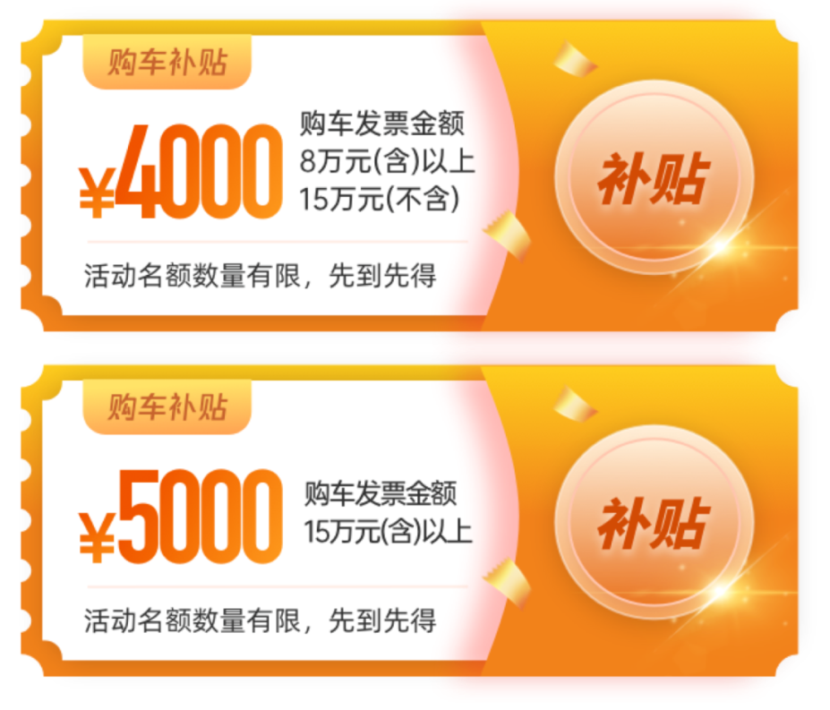 个人消费者在珠海(含横琴粤澳深度合作区,下同)参与活动的汽车销售企业购买新能源或符合国六排放标准的燃油乘用车新车,按购车价格分两档补贴,8万元(含)至15万元补贴4000元/辆,15万元(含)以上补贴5000元/辆。